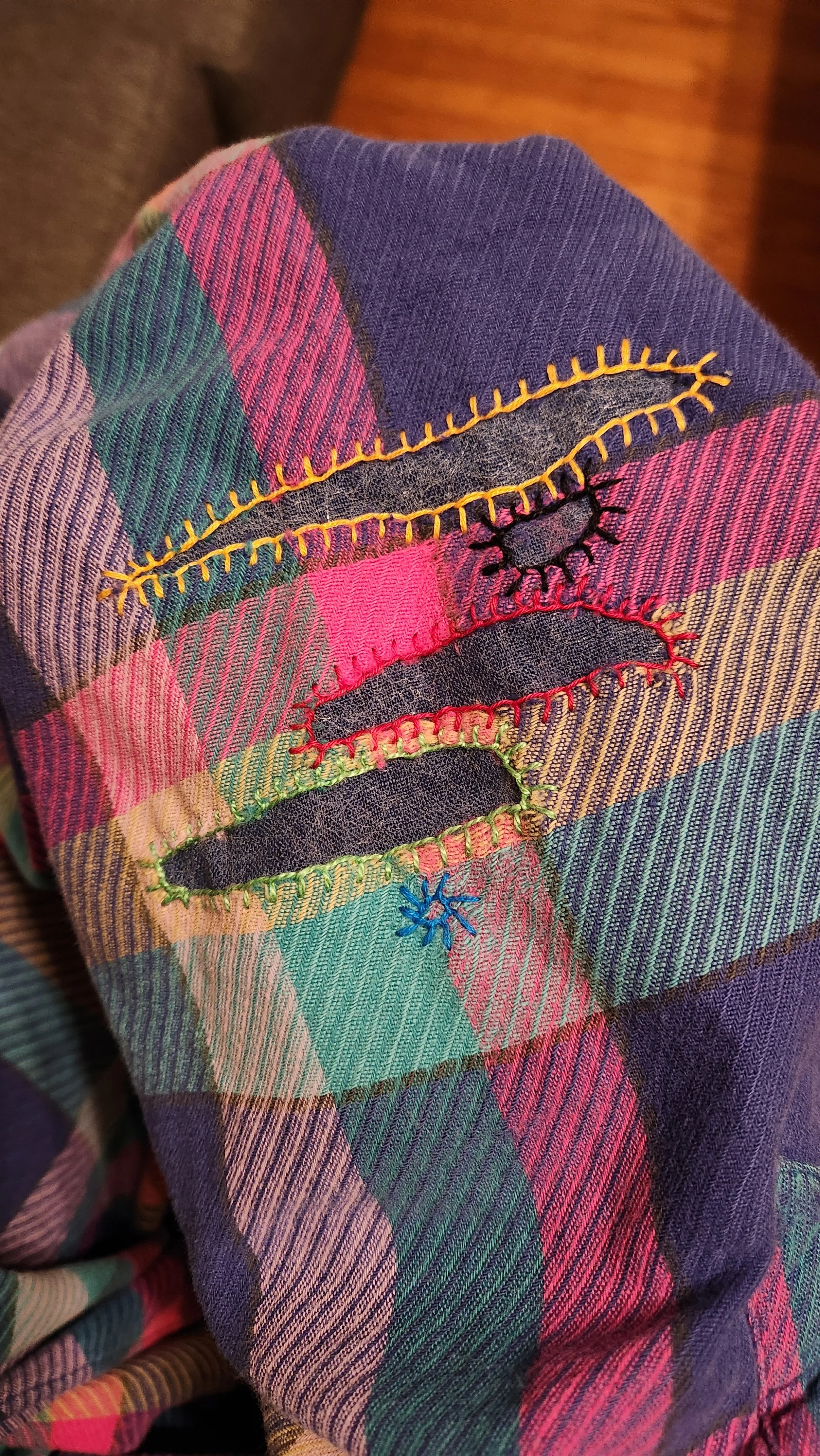 I’ve always mended my clothing, but encountering visible mending in recent years transformed how I think about repair, celebrating it instead of hiding it. Mending feels like an act of resistance against consumerism. It promotes sustainability, extends the life of the things we use, and fosters a more mindful relationship with what we own. By repairing rather than discarding, we reduce waste, conserve resources, and challenge fast fashion culture.