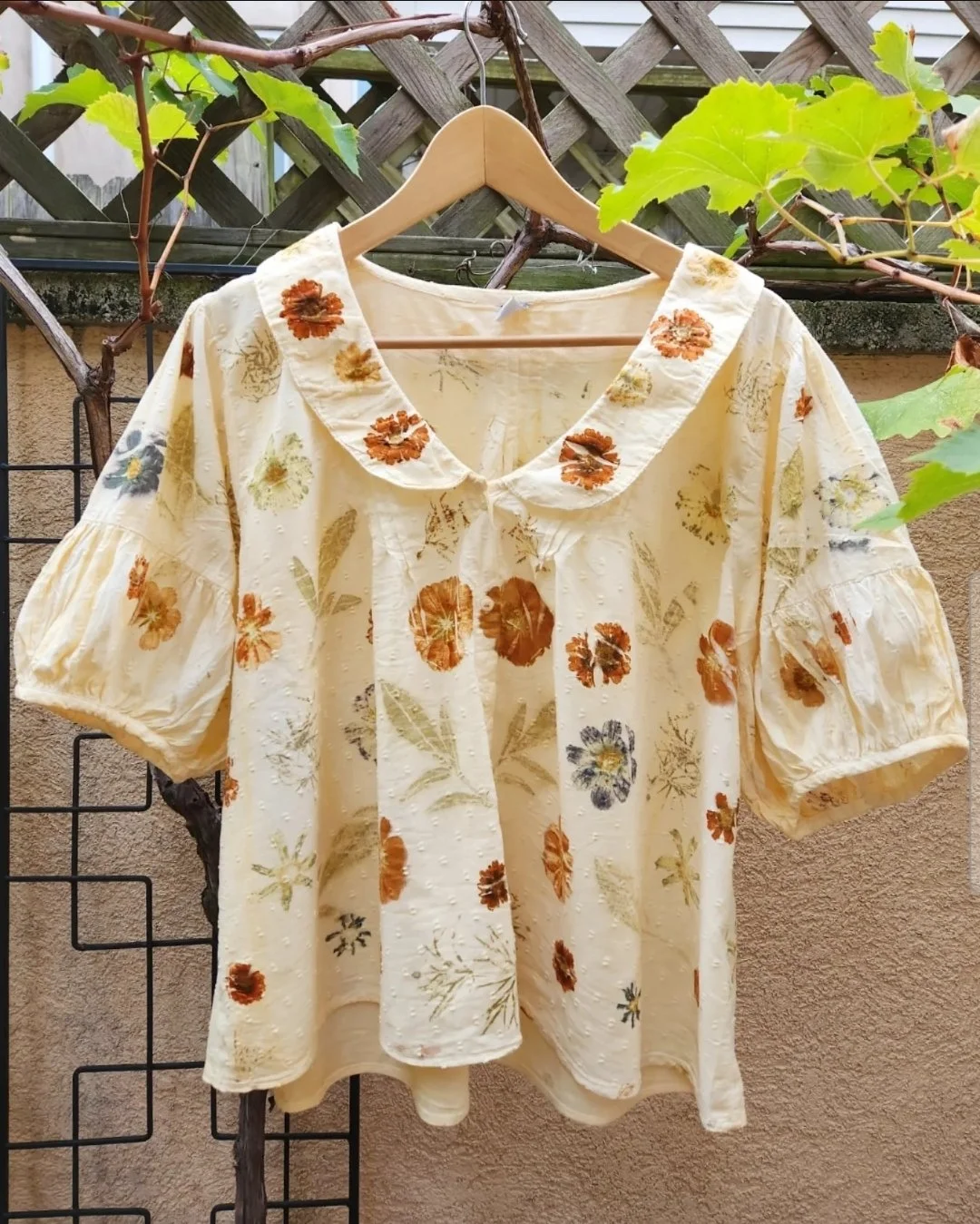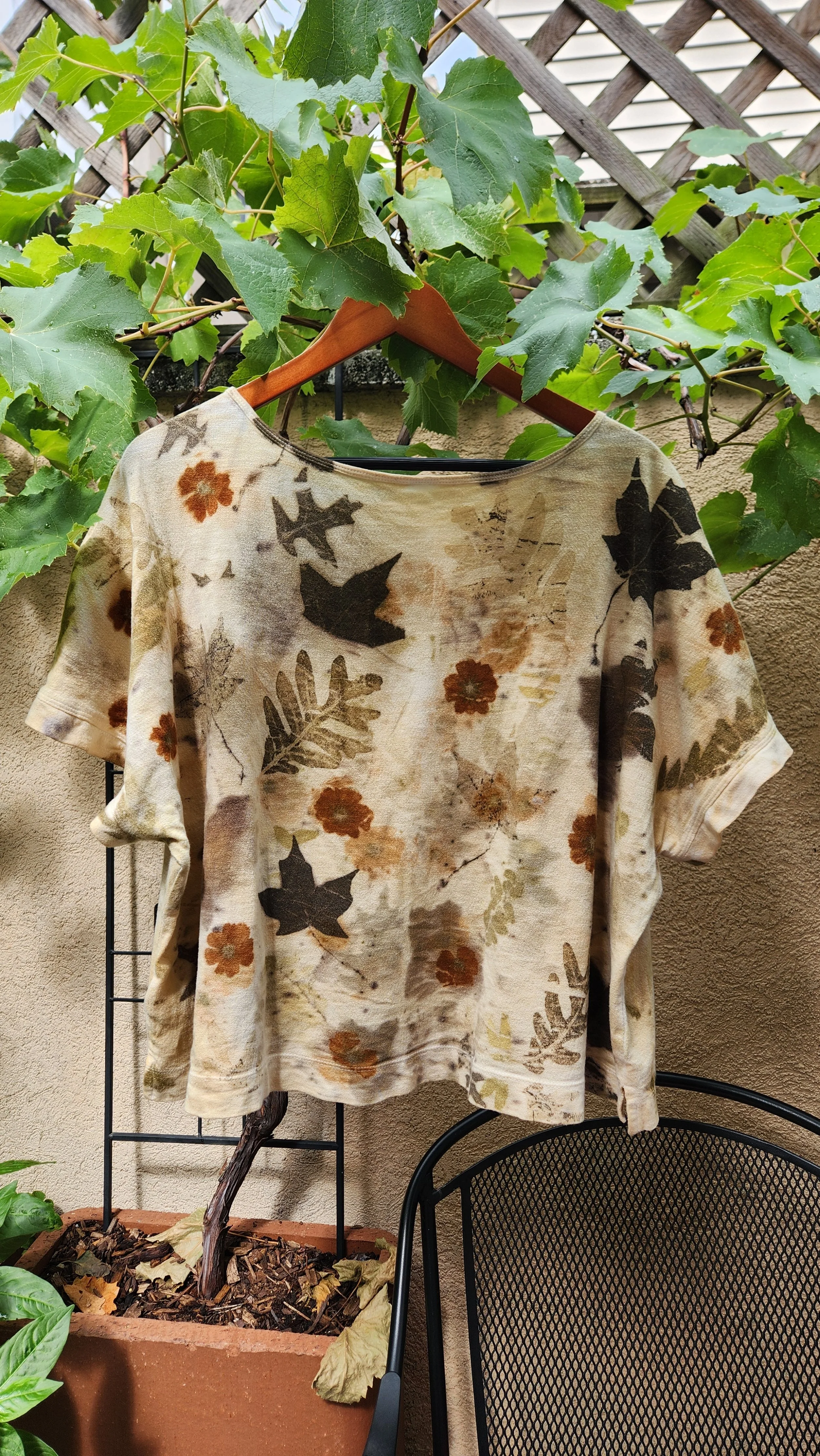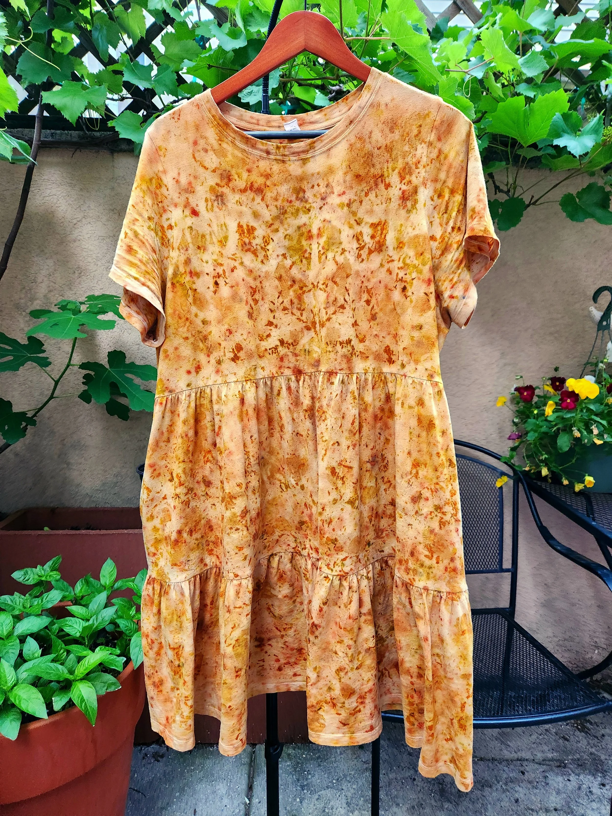 My natural dye practice originated from a desire to revive stained or uninspiring garments. As I experimented with natural dyes, I discovered how color, plant materials, and process could renew what might otherwise be discarded, transforming simple clothing into pieces that feel vibrant and intentional. I still often dye my family’s clothing and occasionally take on commissions from those looking to refresh and extend the life of their garments with natural dyes.